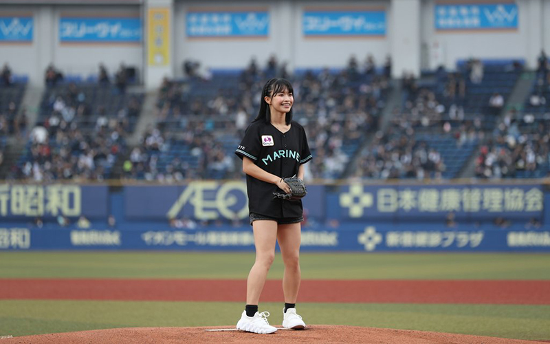 東栄住宅スタッフ役を務めてくれた全力少女Rの百川晴香さんことももはるちゃんがマリーンスタジアム初の始球式!
